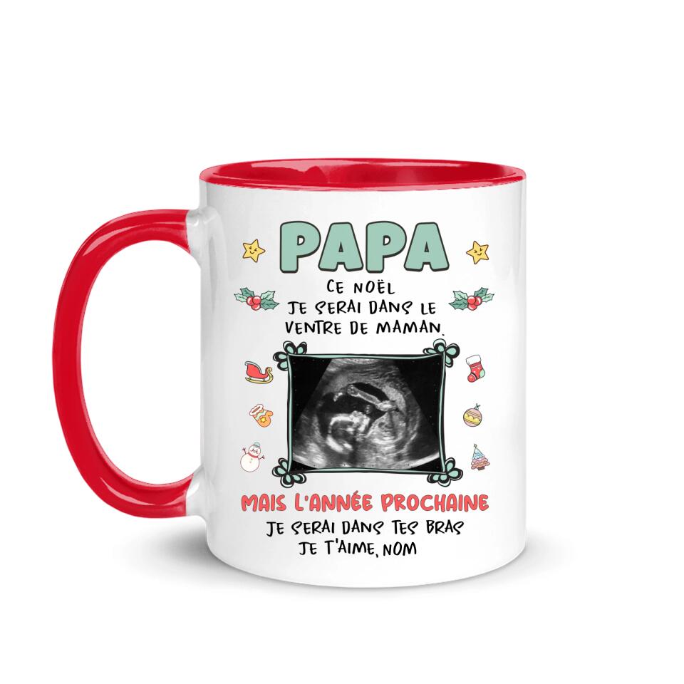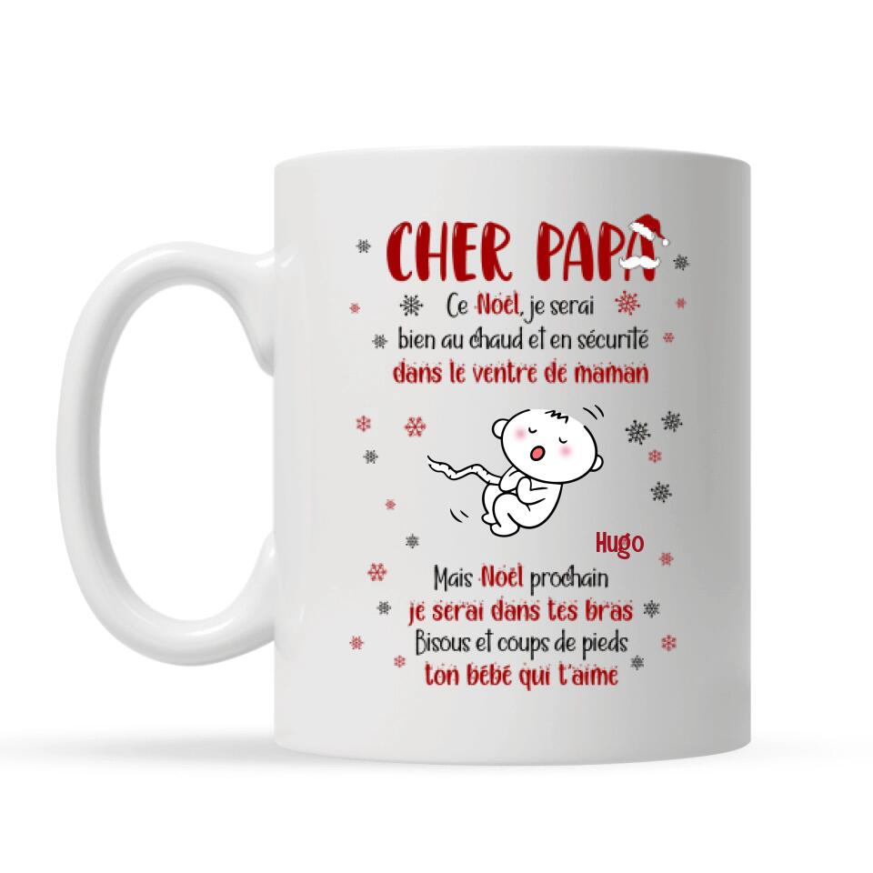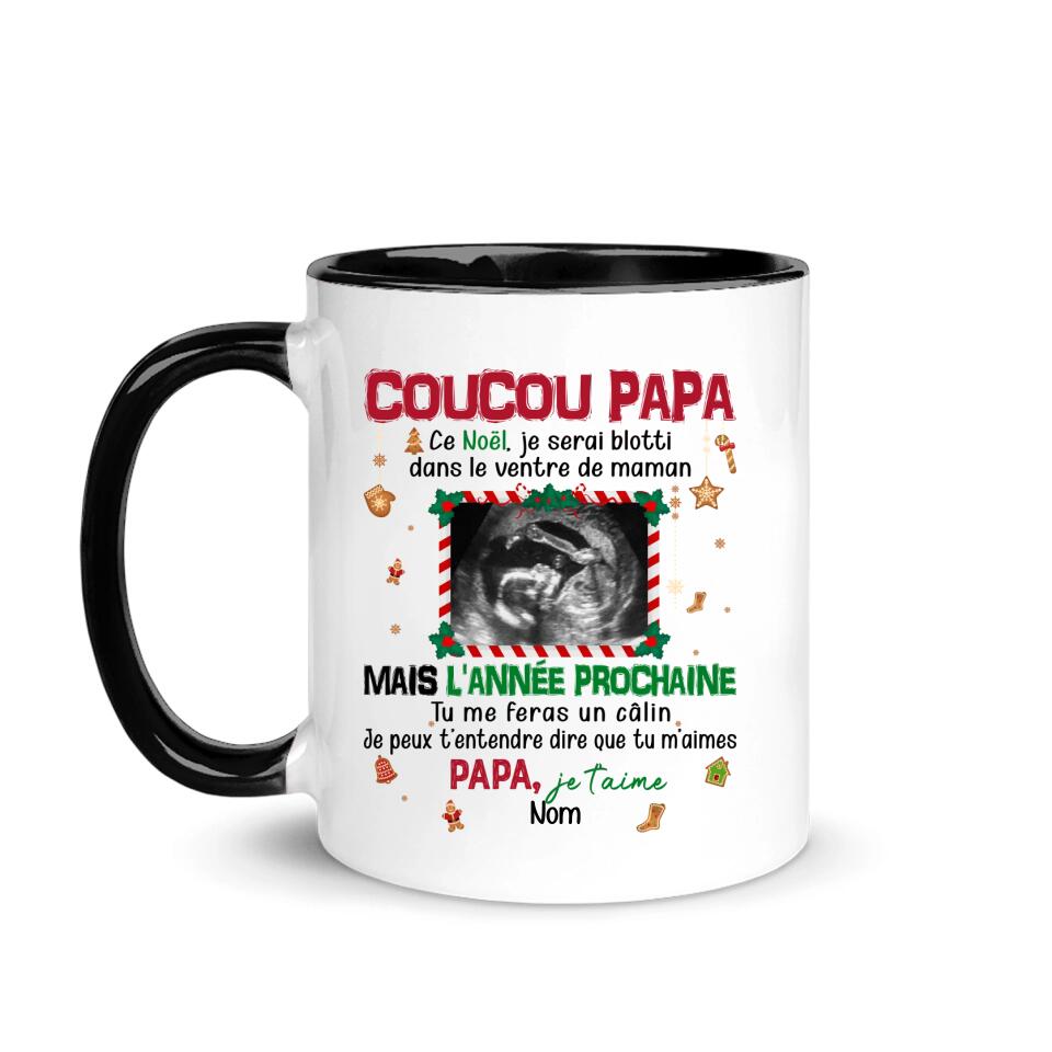 Mug personnalisé pour Papa | Cadeau personnalisé pour Son Père | Coucou papa Ce Noël, je serai blotti dans le ventre de maman