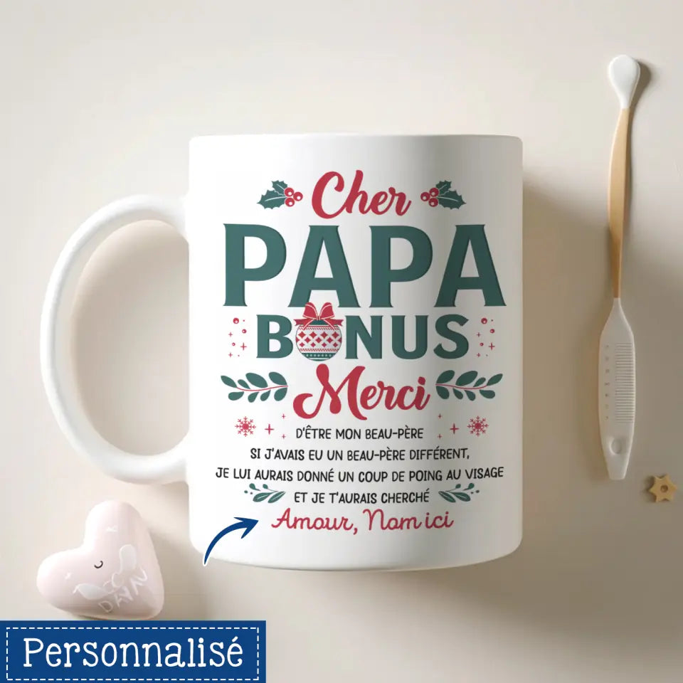 Tasse personnalisée pour Papa| Cadeau personnalisé pour Père | Cher papa bonus