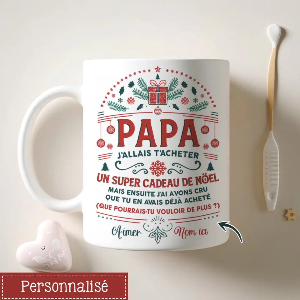 Tasse personnalisée pour Papa| Cadeau personnalisé pour Père | Papaj'allais t'acheter un super cadeau de Noël