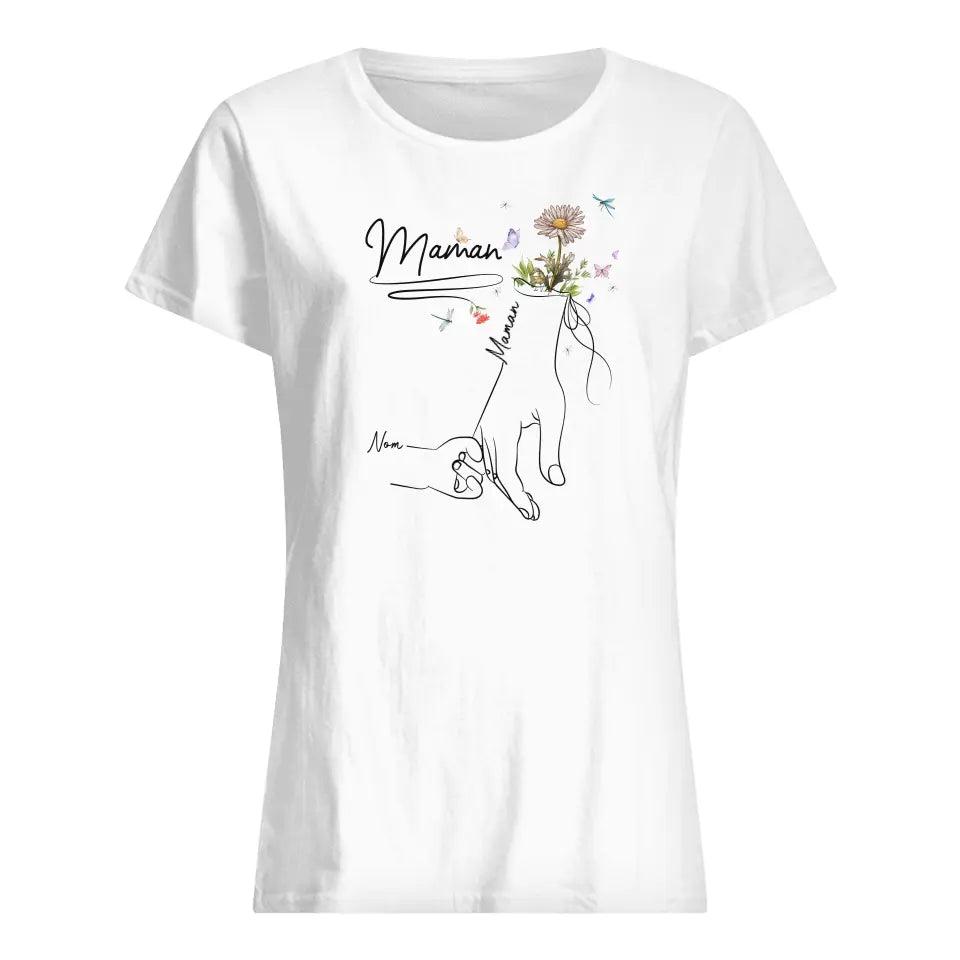 T-shirt personnalisé pour Maman | Maman fleur de naissance et tenant la main