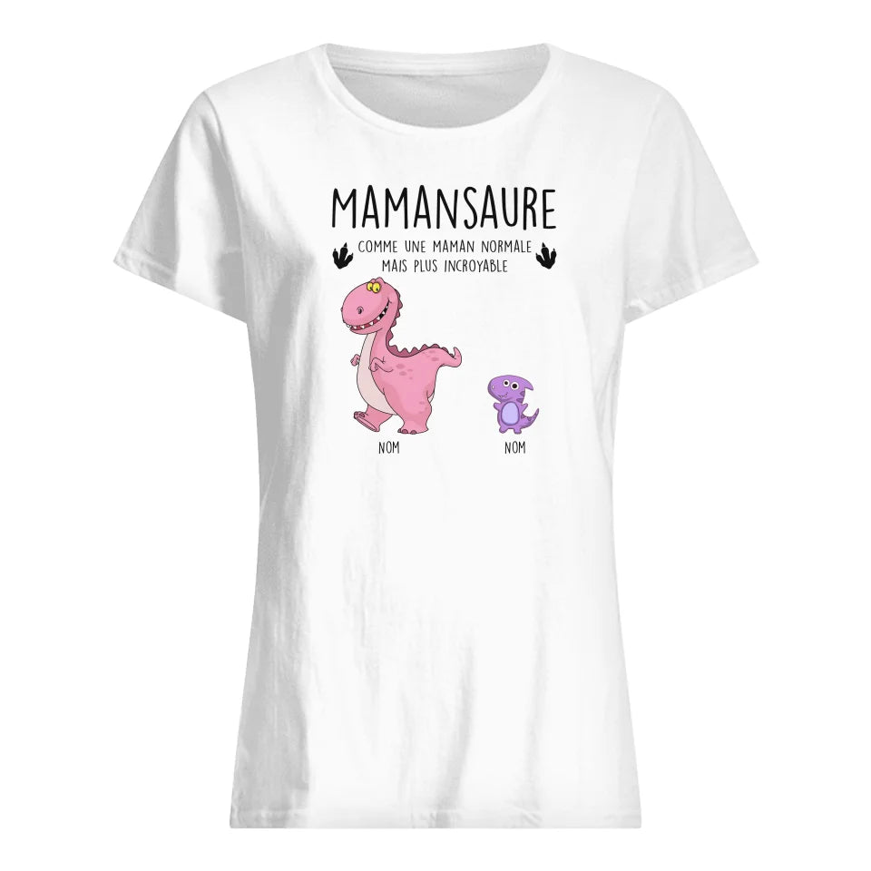 T-shirt personnalisé pour Maman | Cadeau personnalisé pour Sa Mère | Mamansaure comme une maman Normale Mais Plus Incroyable