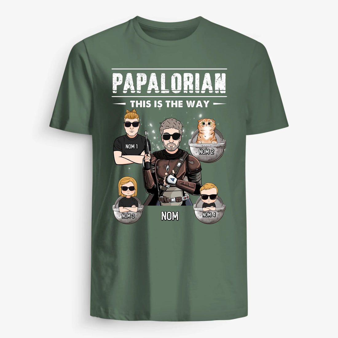 • Tee-shirts imprimés avec son surnom ou une citation qui lui ressemble : "Super Papa", "Papalorian" ou "Papasaure".