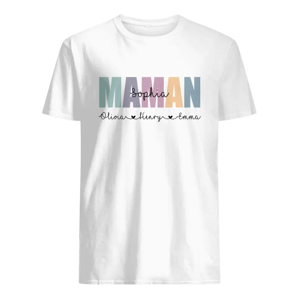 T-shirt personnalisé pour maman | Nom de maman enfants pastel