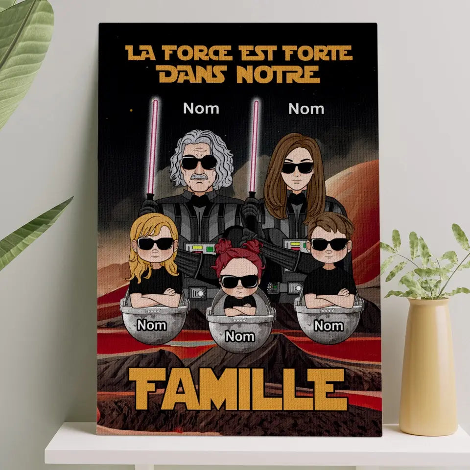 LA FORCE EST FORTE DANS NOTRE FAMILLE - Toile personnalisée pour Famille Papa Maman Enfant Bébé Animal de compagnie