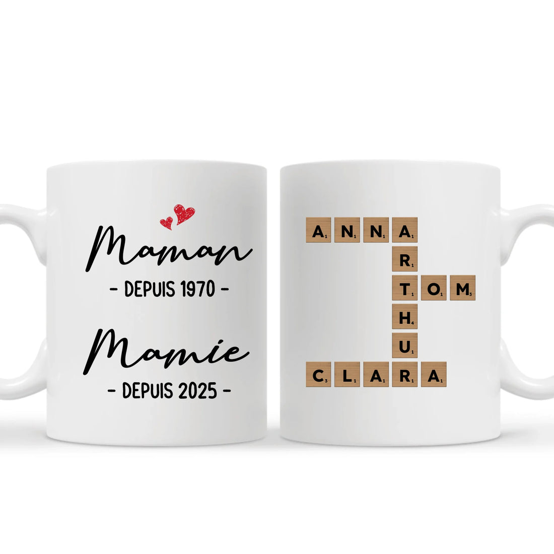 Maman depuis Mamie depuis - Scrabble - Tasse personnalisé pour Mamie