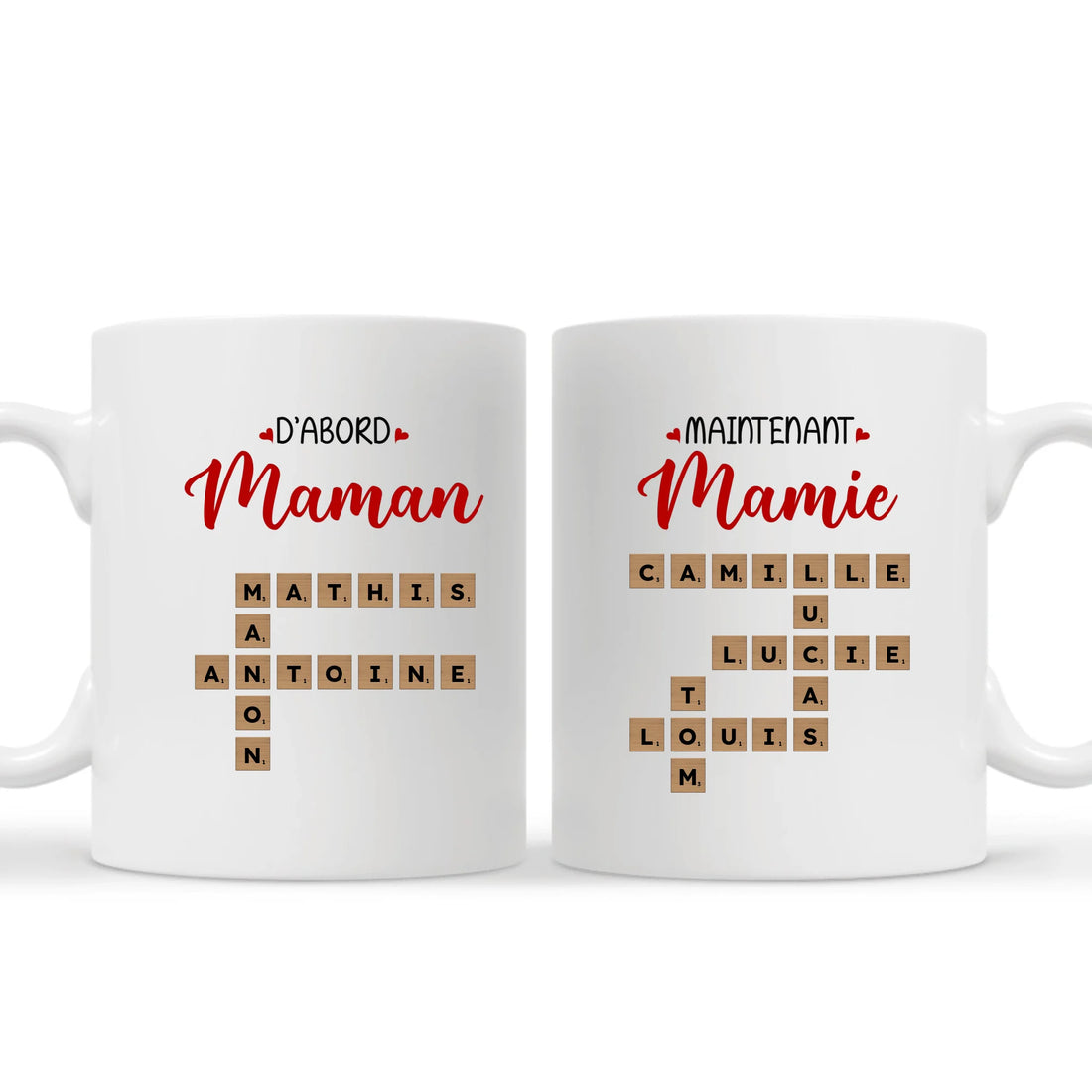 D'abord Maman Maintenant Mamie - Scrabble - Tasse personnalisé pour Mamie Grand-mère
