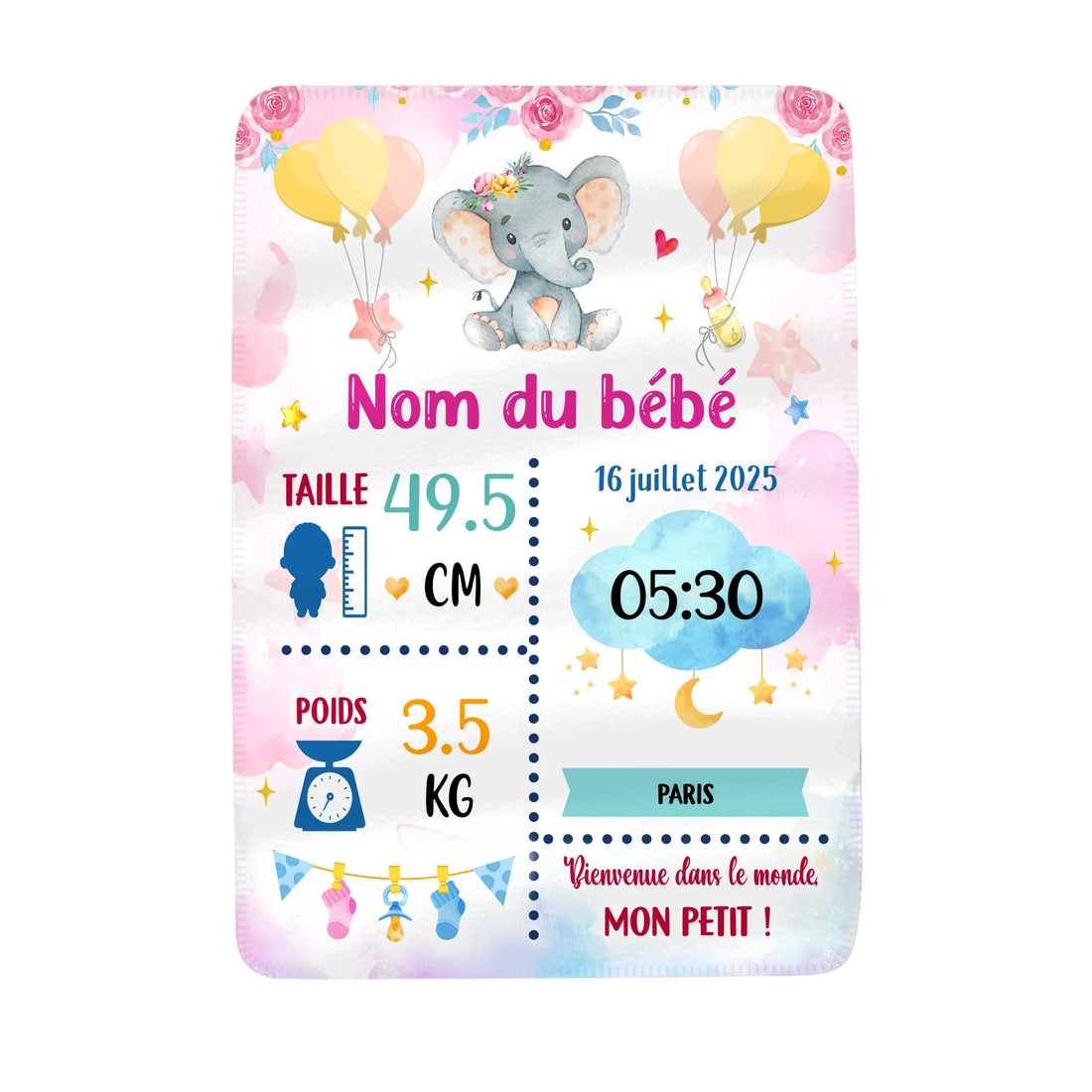 Couverture bébé personnalisée pour Bébé | Cadeau personnalisé pour Enfants | Bienvenue dans le monde, mon petit !