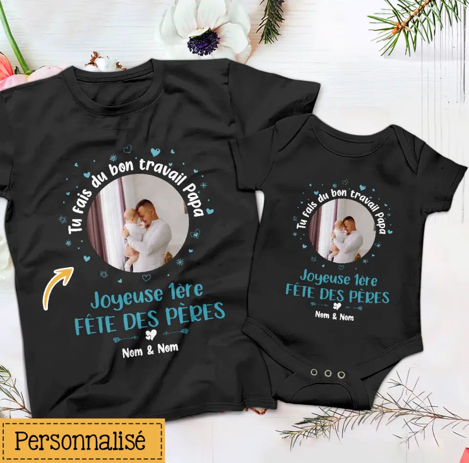 Tshirt personnalisé pour Nouveau papa | Cadeau personnalisé pour Nouveau papa | tu fais du bon travail papa Joyeuse 1ère Fête des pères