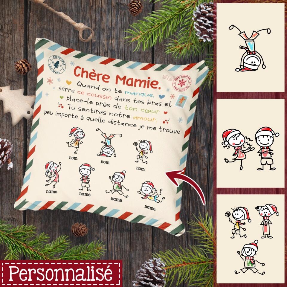 Coussin personnalisé pour Mamie | Cadeau personnalisé pour Grandmère | Quand on te manque serre ce coussin dans tes bras