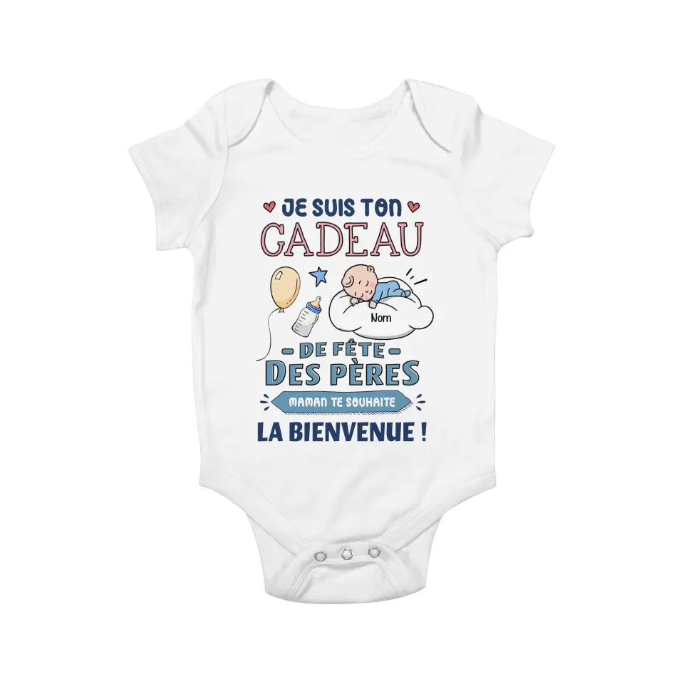 Découvrez notre T-shirt personnalisé pour Nouveau papa, un cadeau unique pour célébrer la fête des pères. Ce t-shirt est parfait pour les nouveaux papas, avec un message touchant : "JE SUIS TON CADEAU DE FÊTE DES PÈRES MAMAN TE SOUHAITE LA BIENVENUE !". Fabriqué en coton de haute qualité, il offre confort et style. Personnalisez-le pour rendre ce moment inoubliable.
