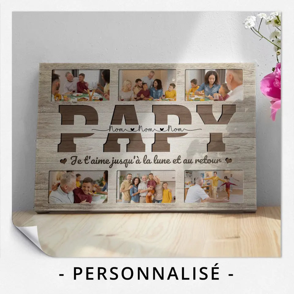 Papa Papy Je t'aime jusqua la lune et au retour - Toile personnalisée pour Père Grand-père